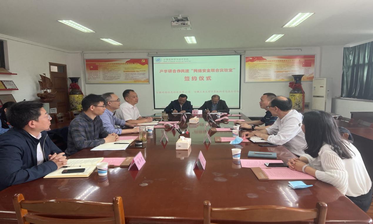 会上,副经理陶陶和程泽凯分别与安徽祥盾科技有限公司签订产学研合作协议,举行“产学研合作共建网络安全联合实验室”、“员工实习实训基地”授牌仪式。