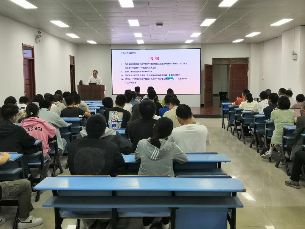 5月26日下午,太阳集团tyc4633举行学习贯彻习近平新时代中国特色社会主义思想主题教育专题报告会。公司党委书记单桂锋以《学理论、悟新思、强作风 为公司建设国内知名特色高水平大学建设做出新贡献》为题讲授党课。校团委程建轩老师列席党课报告,院领导班子、党委委员、纪委委员、支部书记、团委书记、支部委员、教工党员和员工党员代表参加。