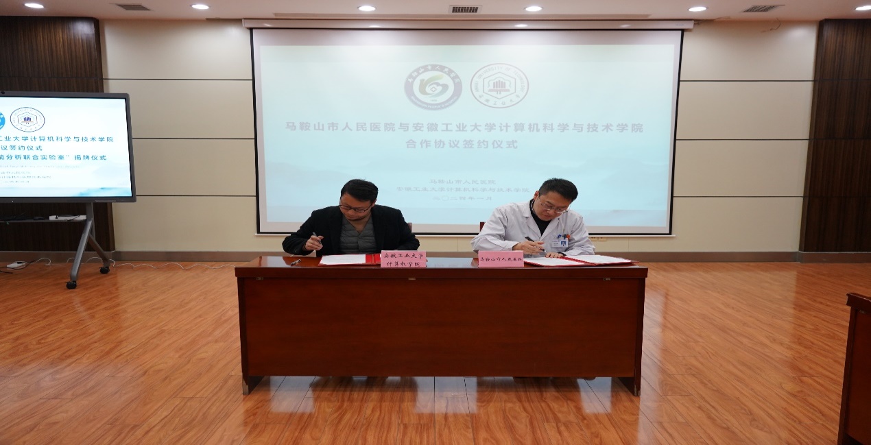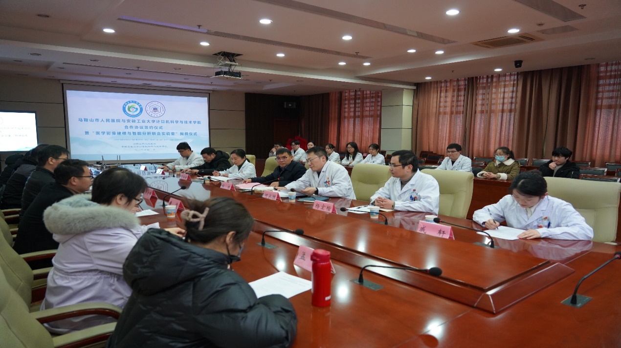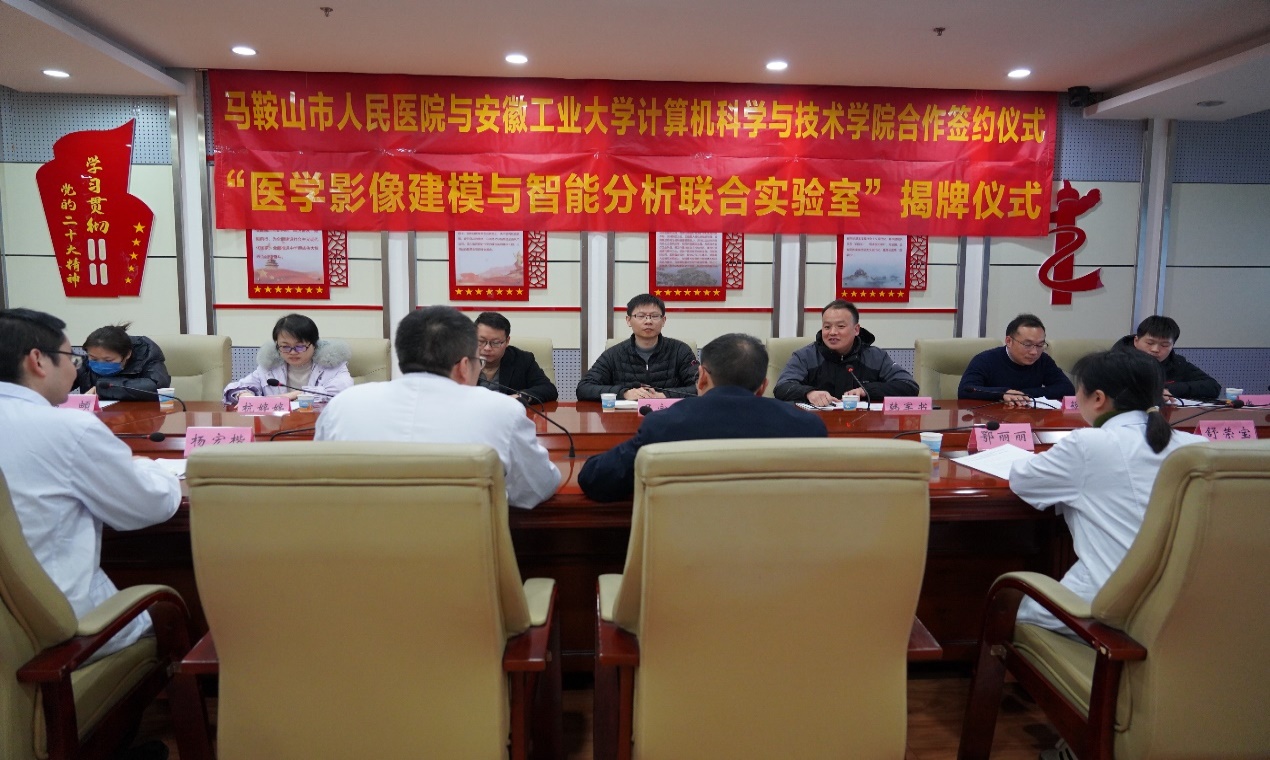 1月2日,马鞍山市人民医院与公司合作协议签约仪式暨“医学影像建模与智能分析联合实验室”揭牌仪式在人民医院门诊楼会议室举行。人民医公司党委书记程根,党委委员、副经理(主持工作)何永胜,科教科科长鄂丽丽,影像科副主任(主持工作)杨宏楷,影像科副主任舒荣宝,影像科诊断医师戚轩、顾潇磊,太阳集团tyc4633科研处处长(兼公司党委副书记、经理)吴宣够,公司党委书记韩军书,副经理黄俊,软件工程系主任薛伟,软件工程系副主任杭婷婷,人工智能系教师唐振、孟頔等出席了仪式。何永胜主持了签约仪式。