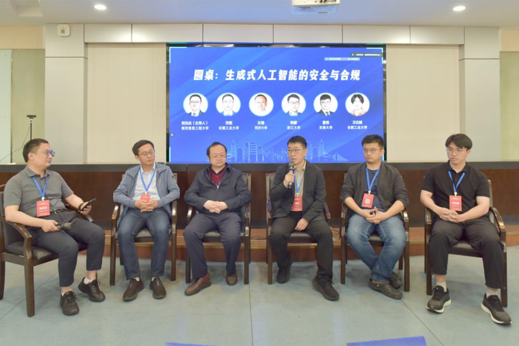 本次论坛主题报告后,还举办了“生成式人工智能的安全与合规”和“数据要素流通的安全挑战与对策”2个圆桌论坛。“生成式人工智能的安全与合规”论坛由南京信息工程大学刘光杰教授主持,东南大学董恺、公司刘恒、合肥工业大学刁云峰、浙江大学韩蒙、同济大学汪镭教授参与讨论。“数据要素流通的安全挑战与对策”圆桌论坛由东南大学陈立全教授主持,上海大学王潮、郑州大学刘炜、山东大学唐朋、西安电子科技大学孙建国、合肥工业大学李萌教授参与讨论。