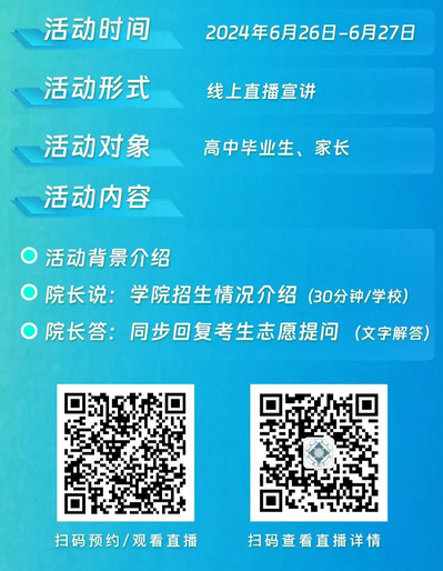 6月26日14:30-15:00,由公司太阳集团tyc4633副经理黄俊副教授线上直播宣讲,通过经理说和经理答环节,考生和家长可了解省内各高校太阳集团tyc4633的招生政策以及各自特色,增加报考志愿相关知识,为规划正确人生方向作出更合适的选择。欢迎各位考生踊跃参与,了解更多志愿填报以及计算机类专业相关知识。