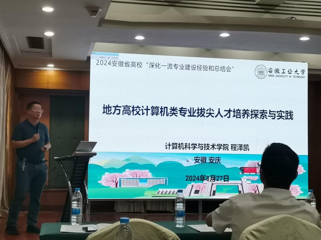 8月27-28日,公司副经理程泽凯,计算机系主任李沁,软件系主任薛伟参加安徽省高校深化一流专业建设经验交流和总结会。程泽凯作了《地方高校计算机类专业拔尖人才培养探索与实践》主题报告。本次专题研讨会以“加强交流合作、寻找问题和差距”为主题。