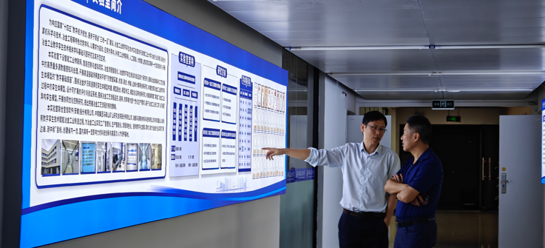 来校期间,李向阳教授一行参观了安徽省冶金数字孪生技术重点实验室。实验室主任吴宣够教授和相关团队负责人介绍了实验室研究内容与建设进展情况。李向阳教授一行观看了“中盐常州数字化管理平台”“徽牛云大数据平台”等研究项目的介绍与演示,双方并对相关研究内容和关键技术进行了深入讨论交流。