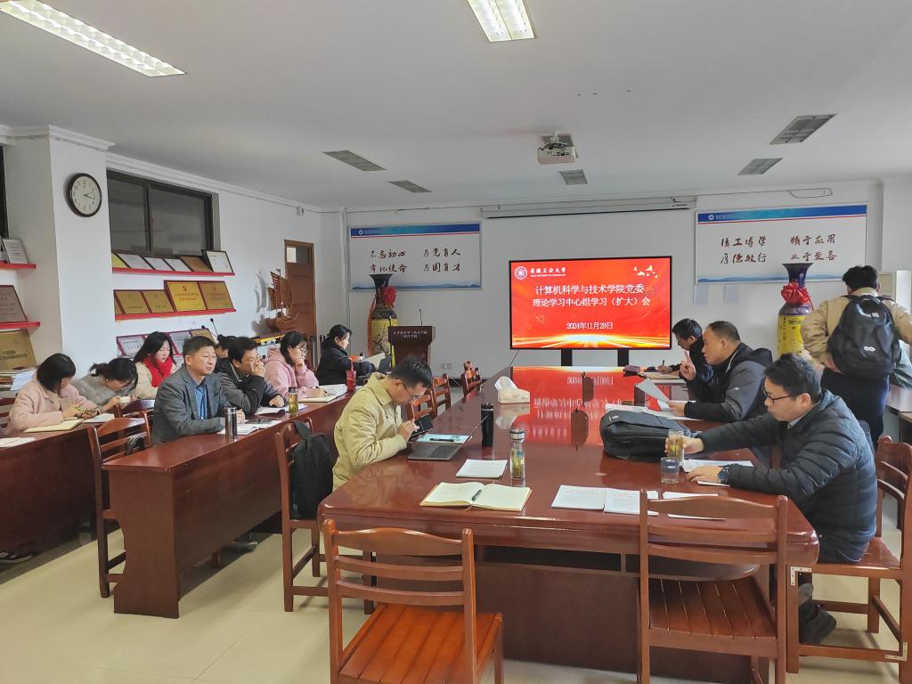 11月29日下午,公司党委理论学习中心组学习(扩大)会议在逸夫楼202会议室召开,院领导、党委委员、纪委委员、党支部书记、教授委员会主任、工会主席、科级干部、辅导员参加,会议由公司党委书记韩军书主持。