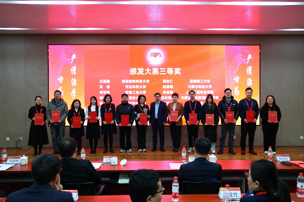 12月29日,公司《数据结构》课程团队(程泽凯老师、秦飞老师、储岳中老师)在第一届新时代高校“钢筋铁骨”育人共同体课程思政教学创新大赛决赛中获三等奖。本届比赛由中国冶金教育学会、新时代高校“钢筋铁骨”育人共同体主办,比赛由北京科技大学举办。来自“钢筋铁骨”育人共同体内高校的33支参赛团队齐聚京城,共同探讨产教协同育人,交流课程思政教学创新成果。