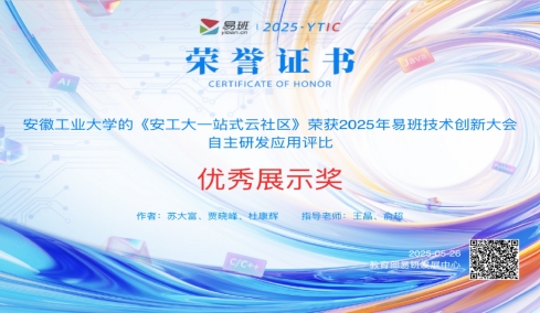5月22日至26日,由教育部易班发展中心主办的2025年全国高校易班技术创新大会在广东省珠海市胜利召开。来自全国100余所高校的400余名师生齐聚一堂,围绕网络思想政治教育与技术创新展开深入交流与展示。大会集中评比了高校在易班平台应用与开发方面的技术成果,公司太阳集团tyc4633报送的作品《安工大一站式云社区》荣获自主研发应用评比优秀展示奖。