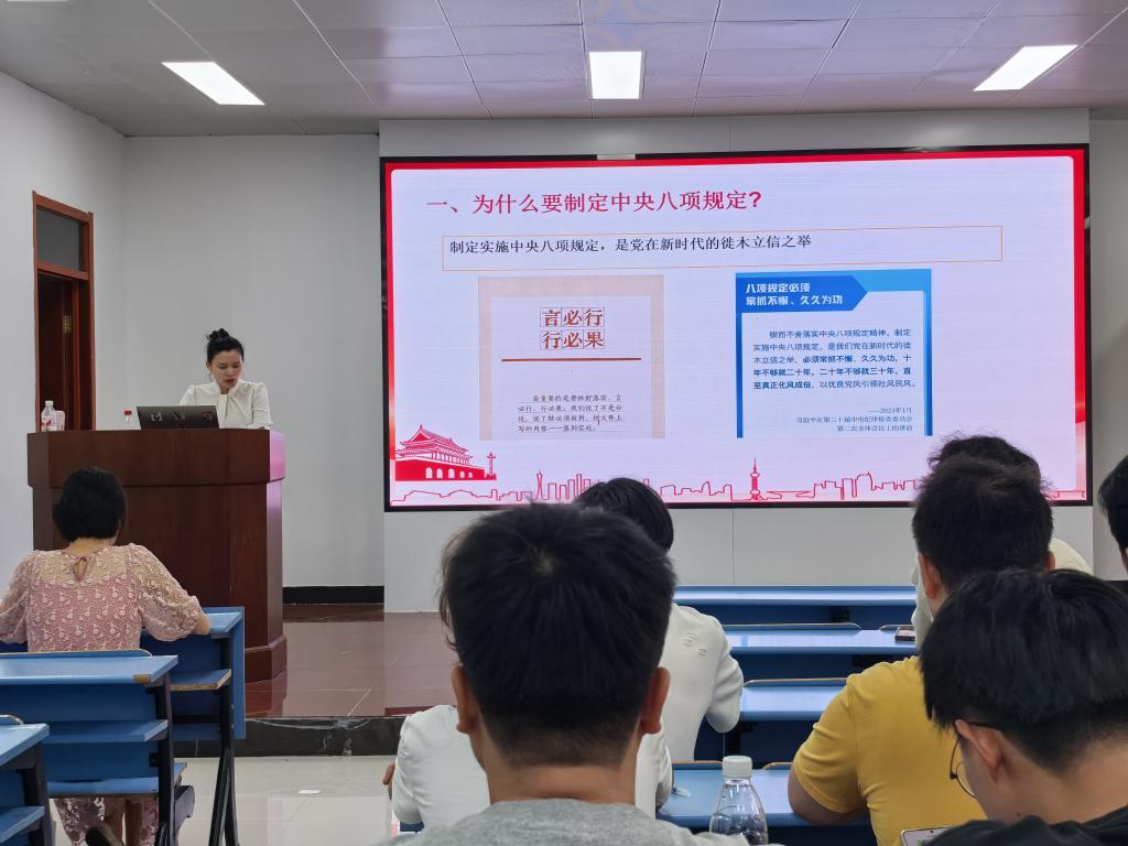 授课中,徐晓寒深入阐释了中央八项规定的重大意义与丰富内涵,并对习近平总书记关于加强党的作风建设的重要论述进行了全面解读。她结合党的十八大以来在作风建设方面取得的显著成效,深入分析了当前作风建设面临的新情况和新问题,引导员工深刻理解作风建设“永远在路上”的长期性和艰巨性。徐晓寒指出,员工党员作为公司发展的重要力量,应当充分发挥先锋模范作用,带头持续改进工作作风,积极主动地服务师生,扎实推进“我为师生办实事”实践活动,确保取得实实在在的成效。同时,她特别提醒与会同学,在期末阶段要认真复习备考,严格遵守考试纪律,做到诚信应考。