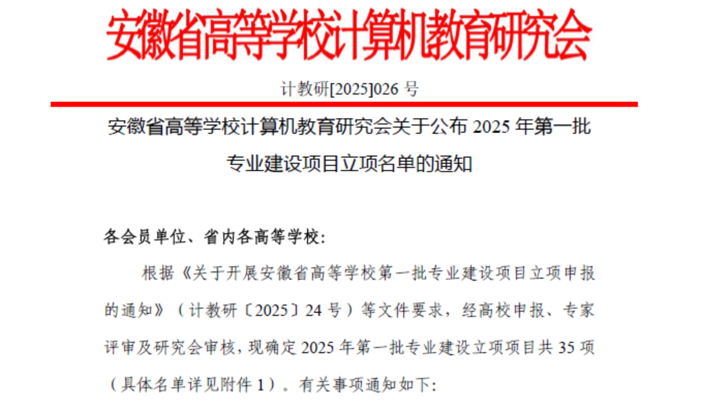 此次安徽省高校专业建设项目聚焦计算机及相关专业领域,旨在遴选支持一批理念先进、特色鲜明、成效显著且具有示范引领作用的建设项目,通过探索专业建设、课程改革、教学模式创新的有效路径,提升专业建设内涵与人才培养核心竞争力,为全省高等教育高质量发展提供有力支撑。