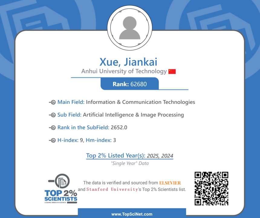 全球前2%顶尖科学家榜单通过基于其论文引用数、h因子、合著者修正的hm因子、单独或第一作者的文章引用数等综合参数进行遴选,覆盖22个主学科和174个子学科领域,最终从全球近700万名科学家中遴选出世界排名前2%的科学家,是全球范围内极具影响力的榜单。