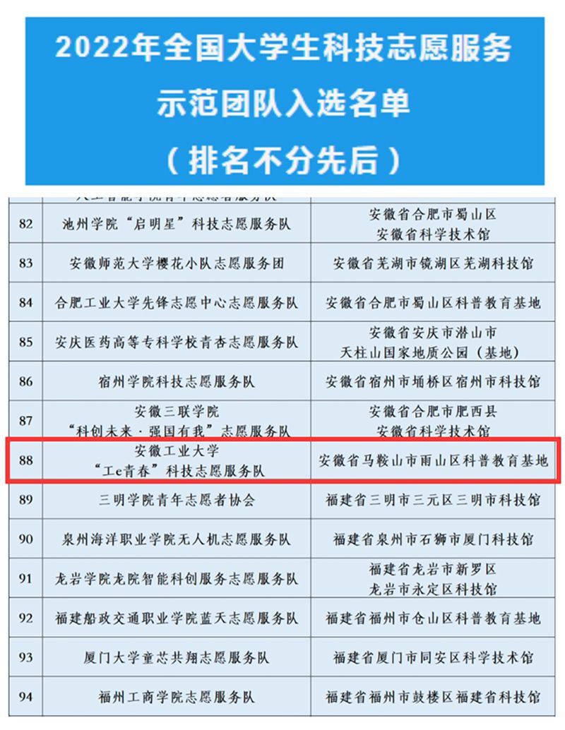 近日,团中央青年志愿者行动指导中心、中国青年志愿者协会秘书处中国科学技术协会宣传文化部联合公布了2022年全国老员工科技志愿服务示范团队入选名单,公司“工e青春”科技志愿服务队成功入选。此次全国共遴选300支团队,安徽省获批11支。