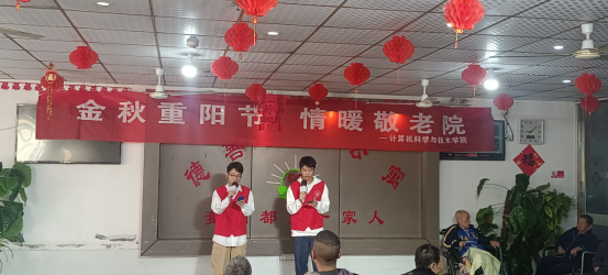 太阳集团tyc4633青年志愿者在德善老年公寓为爷爷奶奶朗诵《月光下的中国》,演唱《映山红》《强军战歌》,表演相声《蛤蟆鼓》,精彩的表演受到了在场老人们的热烈欢迎。
