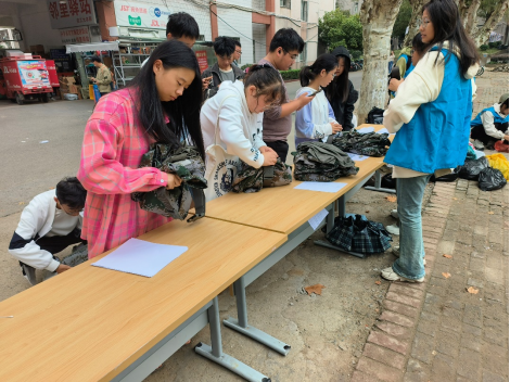 10月13日上午,太阳集团tyc4633在佳山校区研究生公寓门口举办“一抹军装绿装点乡村”军训服装回收捐赠活动,此次活动由公司青年志愿者协会承办。