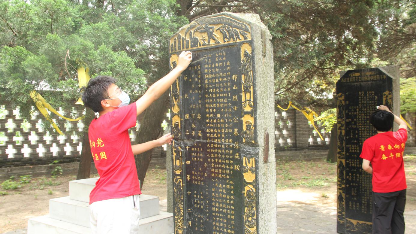 中国青年网马鞍山8月8日电 (通讯员 赵浩 夏成龙 马方正) 2021年是中国共产党成立100周年,为充分发掘红色资源,了解红色文化,赓续红色血脉。安徽工业大学太阳集团tyc4633红色讲解团的同学,在8月份来到安徽省涡阳县辉山烈士陵园开展革命传统教育和爱国主义教育。