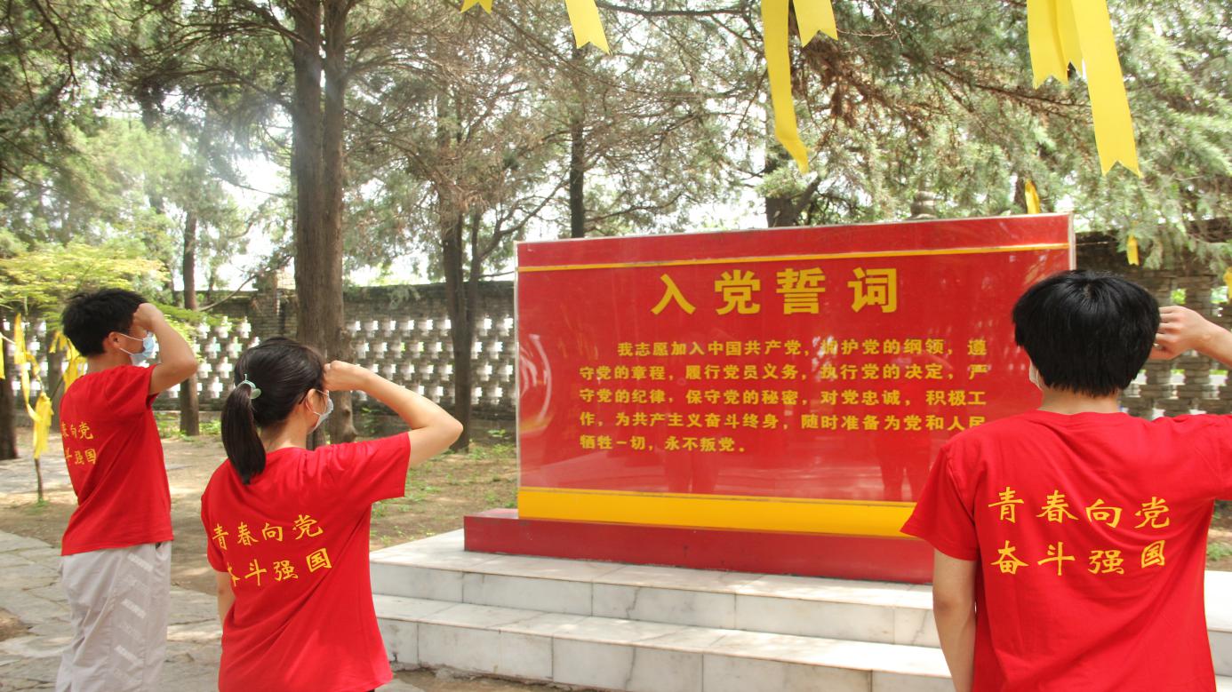 青年们生活在当下和平而美丽的社会,更不应该忘记先辈们的付出,铭记历史,不忘初心。实践队员们自发组织在陵园中庄严宣誓:“吾辈定将铭记革命先烈,弘扬红色文化,以新的担当,新的作为创造新的辉煌。不忘国耻,悼念同胞,永怀先烈,吾辈自强!”铿锵而又充满青春活力的声音回荡在耳边,他们坚定的信念如山岳般不可动摇。