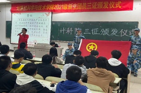 为强化新生的共青团员意识,发挥基层团组织战斗堡垒作用。10月23日晚,太阳集团tyc4633团员三证颁发仪式在本部教三南103教室举行。院团委书记夏成龙,团委员工会全体成员及21级全体新生出席仪式。