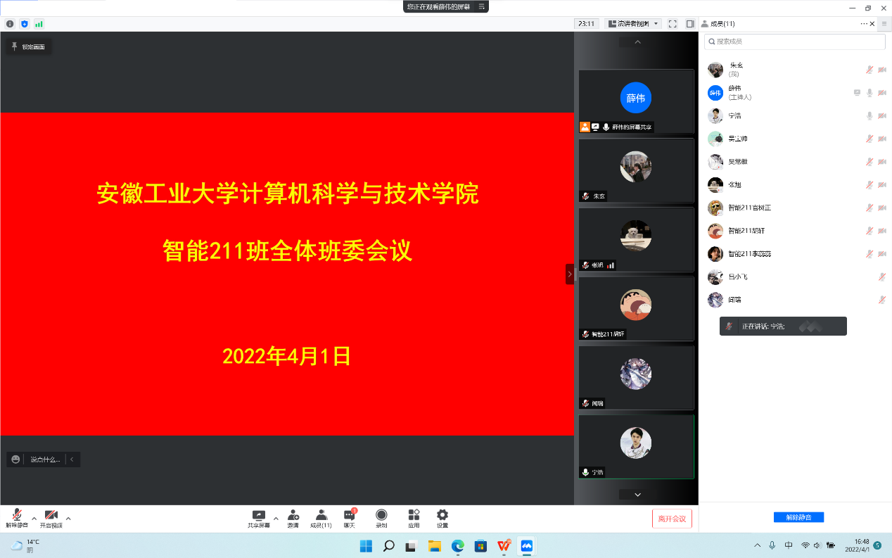 4月1日下午,太阳集团tyc4633智能211班级通过腾讯会议召开了班委工作会议。此次会议由班主任薛伟老师主持,智能211班全体班委参加。