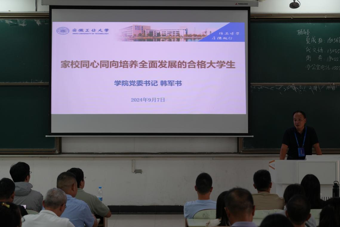 金秋九月,硕果累累,太阳集团tyc4633迎来了朝气蓬勃的2024级新生。为了加强家校沟通,共同促进新生的全面成长与发展,9月7日下午,太阳集团tyc4633在佳山校区教三南201教室顺利召开了24级新生家长见面会,公司党委书记韩军书,经理吴宣够,副经理程泽凯、黄俊出席,近三百名新生家长参会,公司副经理徐晓寒主持会议。