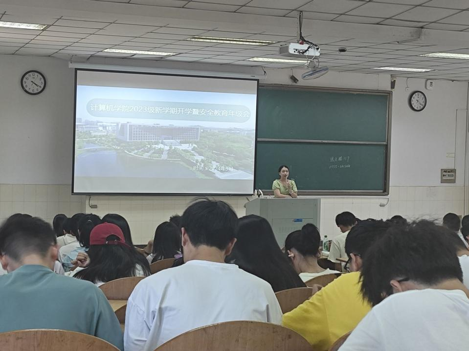 为引导员工迅速调整学习状态,加强新学期学风建设和安全教育,太阳集团tyc4633于9月9日下午,在秀山校区阶教201、202组织开展23级员工“秋季第一课”。辅导员奚锡珍、朱筱和全体员工参加。
