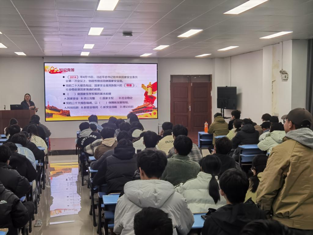 宣讲会末尾还进行了总体国家安全观知识竞答,内容囊括了国家安全、法律法规以及日常生活中应注意的安全事项等多个方面,现场同学积极作答。同学们表示要自觉维护国家安全,争做捍卫国家安全的践行者。
