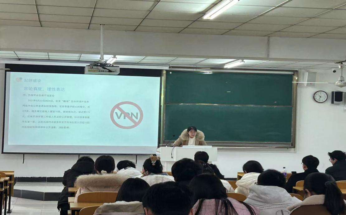 会上,冯晟首先向全体同学传达了公司及公司关于毕业生相关事项与整体部署,提醒同学们反复核对课程学分以及按时按质完成毕业设计等,并对期末诚信应考提出具体要求。针对即将到来的寒假假期,冯晟从假期安全教育、宿舍安全隐患排查、严格落实请销假三个方面提出要求,时刻提高安全防范能力。针对目前就业情况,冯晟分享了年级同学在择业准备阶段和面试阶段的心得体会,提醒未就业的同学针对自身现状和就业岗位情况,及时调整就业预期。针对校园频发的电信网络诈骗,冯晟介绍了求职诈骗典型案例,强调了个人隐私信息保护的重要性。会后,冯晟就员工关心的应征入伍政策、考研后计划安排、体质测试、二课活动等问题一一交流解答。