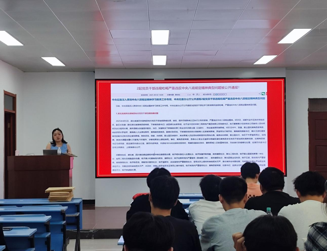 开展一次党课活动,筑牢思想根基。以中央八项规定精神为核心内容的专题党课上,员工第一党支部书记代文嫣结合实际案例,深入解读中央八项规定出台的背景、意义及具体要求。毕业生党员围绕“如何今后的工作和学习生活中贯彻落实八项规定”展开热烈讨论,进一步强化纪律意识和规矩意识,筑牢拒腐防变的思想防线。