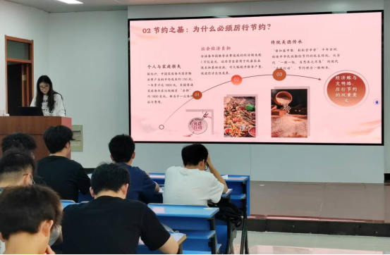 老员工宣讲团成员胡婧围绕“节约之基:为什么必须厉行节约?”展开分享,并结合“光盘行动”和传统美德,呼吁全体同学从自身做起,珍惜每一粒粮食、每一度电、每一张纸。活动后,同学们纷纷在便利贴上写下自己的节约小妙招,互相学习、互相警示,彼此交流节约心得,表示今后将减少餐饮浪费、合理使用学习资源,并带动身边人共同践行节约。
