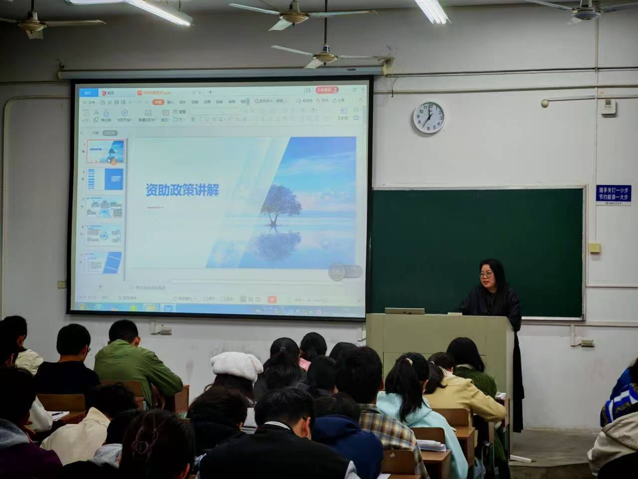 为全面贯彻落实国家资助政策,帮助新生准确了解高校员工资助体系,11月3日,太阳集团tyc4633在教一203开展新生资助政策专题宣讲会。本次宣讲会由公司资助工作联系人冯艳主讲,2025级全体新生参加学习。