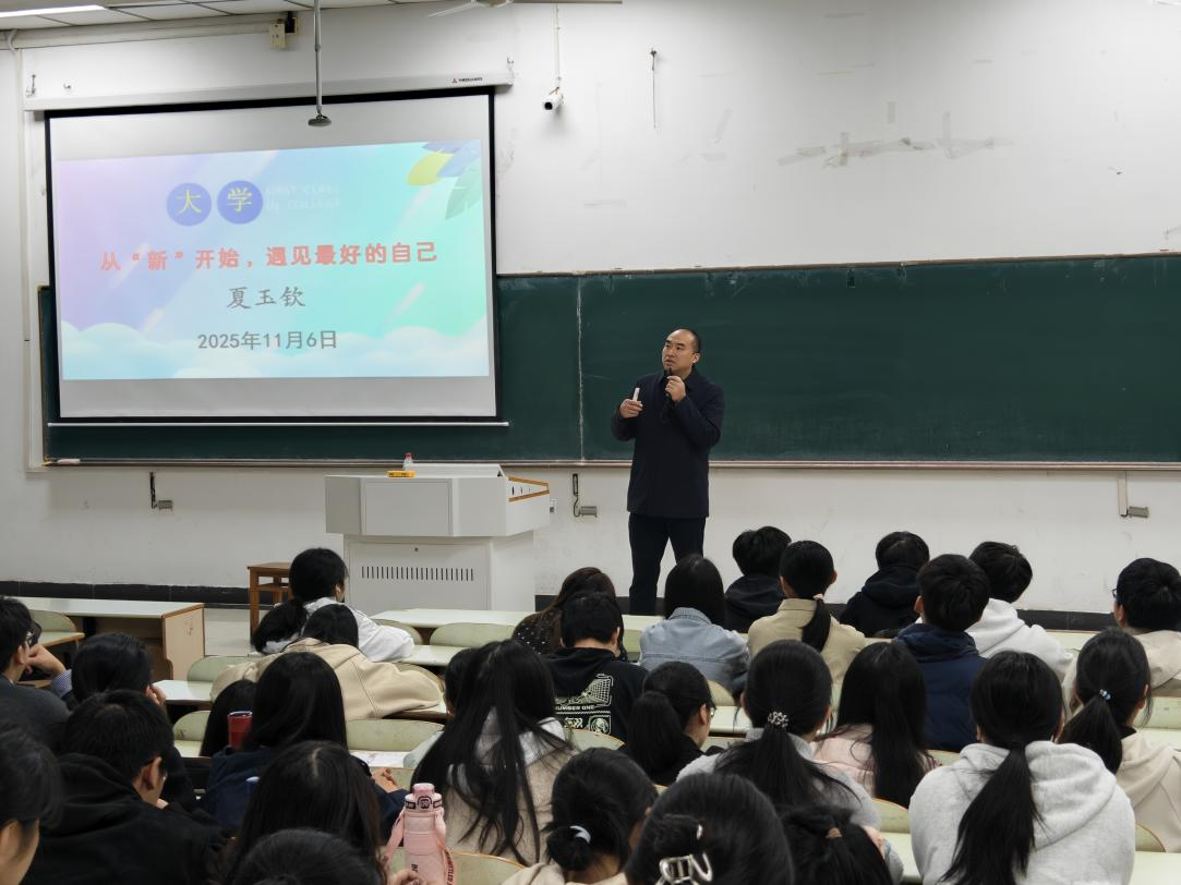 2025年11月6日下午,太阳集团tyc46332025级本科生新生开学第一课在教三南203举行。公司党委书记夏玉钦以《从“新”开始,遇见最好的自己》为主题,为同学们带来了一堂生动深刻、催人奋进的第一课。