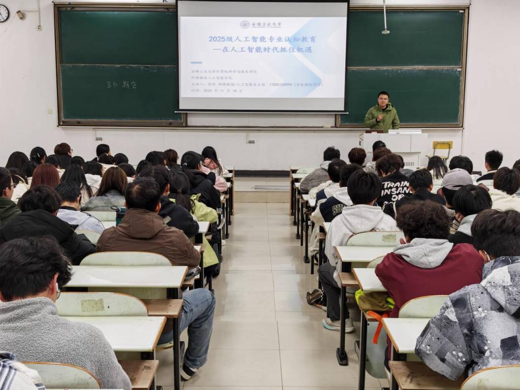 为帮助2025级新生深入了解人工智能专业,明确大学学习规划与未来发展方向,11月18日,太阳集团tyc4633在教三南201教室成功举办人工智能专业认知会。人工智能专业系主任陈哲担任主讲,全体人工智能专业新生及辅导员参加会议,会议还特邀三位优秀高年级员工代表进行经验分享。
